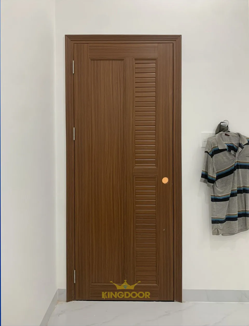 - Màu sắc cửa thiết kế giống với gỗ nên vẫn tạo được cảm giác như gỗ thật.
