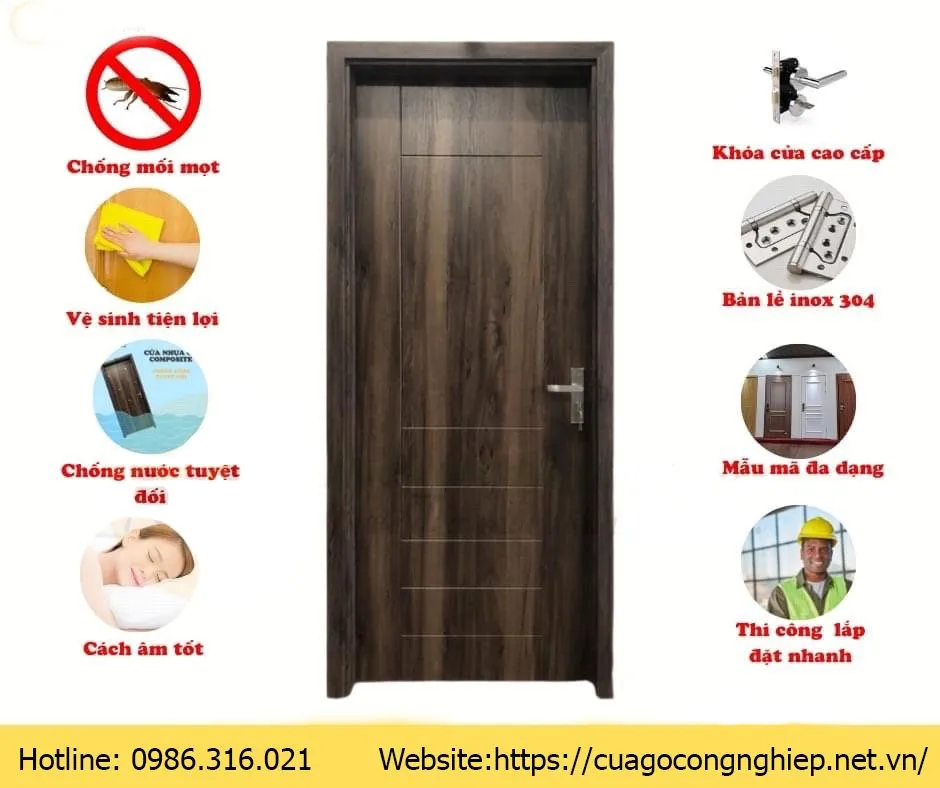 - Chịu nước tốt, không bị ngấm nước, không ăn mòn, chống ẩm, chống mối mọt, được cấu tạo từ những hạt nhựa và bột gỗ ,được ngâm tẩm thuốc chống mối mọt . được đúc nguyên khối vững chắc nên cửa Composite tại Quận 7 chống ẩm chống thấm và chống mối mọt cực kỳ tốt.