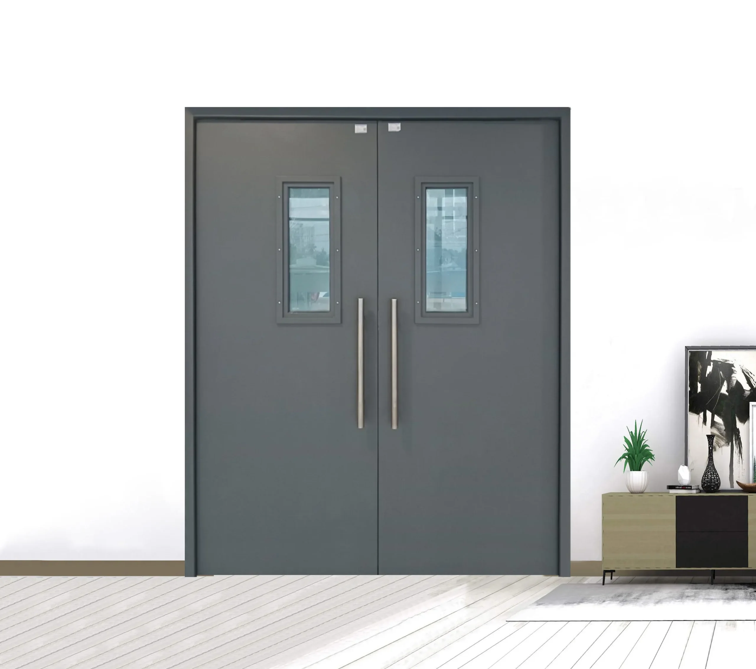 - Cửa thép chống cháy 60 phút: Phù hợp với các công trình nhỏ, nhà ở, căn hộ chung cư, lối thoát hiểm nội bộ.