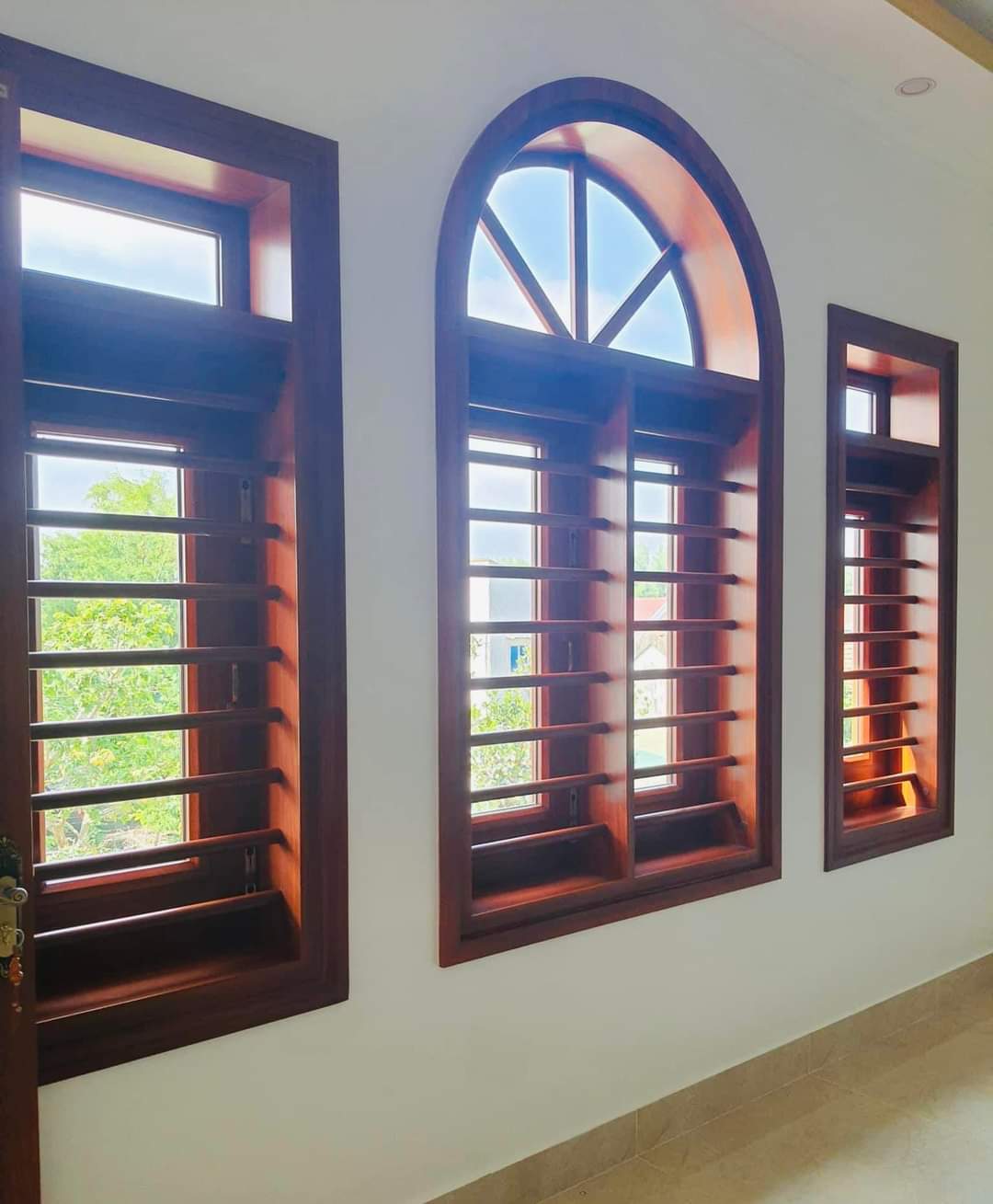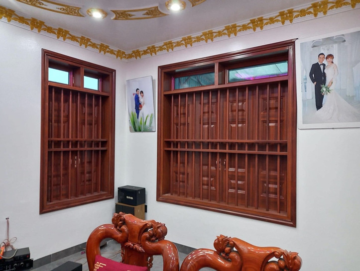 – Cửa sổ thép vân gỗ gồm cửa sổ 4 cánh, cửa gỗ 2 cánh và cửa sổ 1 cánh